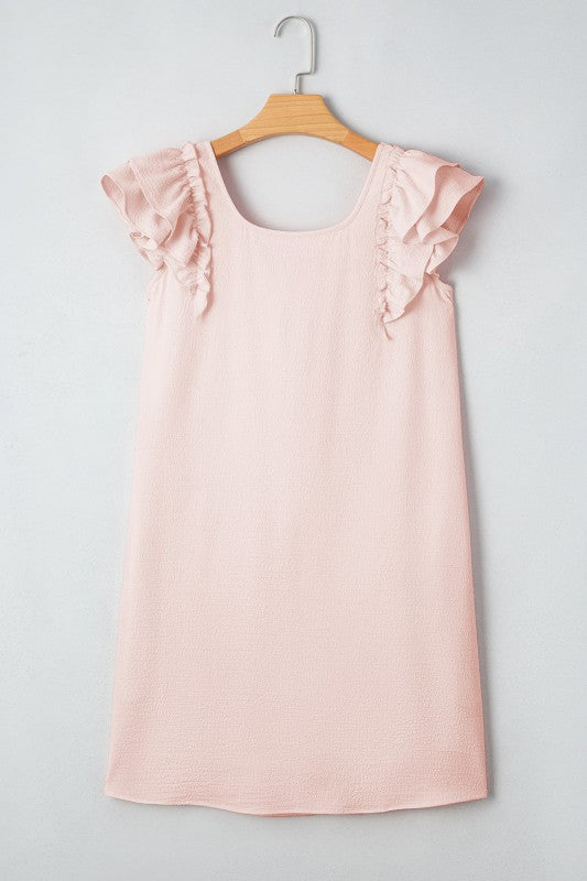 Abigail Textured Flutter Sleeve Bow Back Mini Dres