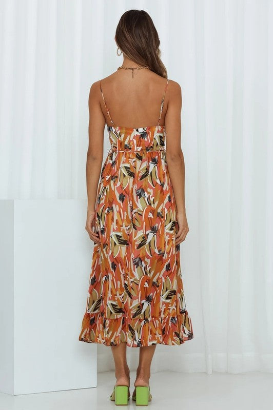 Women's Floral Print A-Line Printed Ruffle Halter