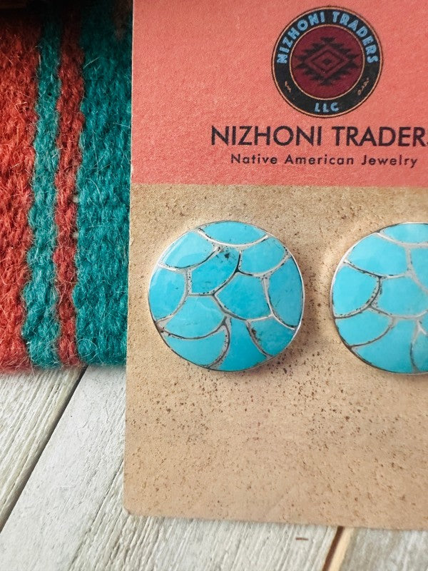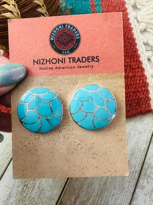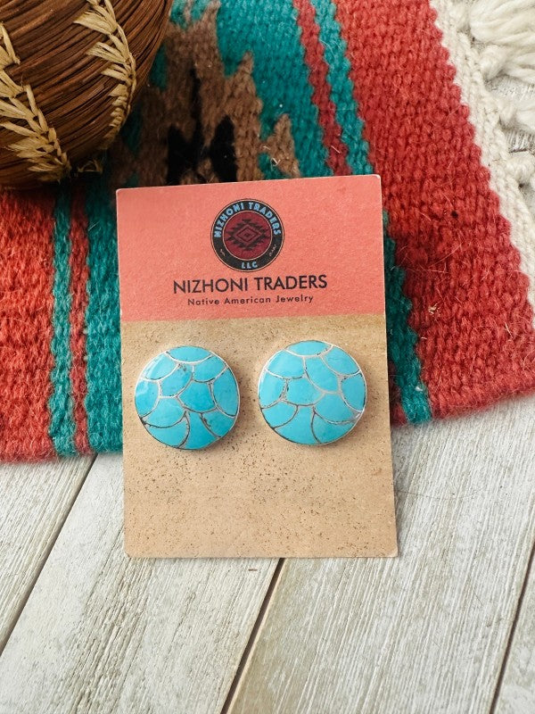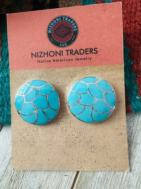 Zuni Turquoise & Sterling Silver Inlay Post Earrin